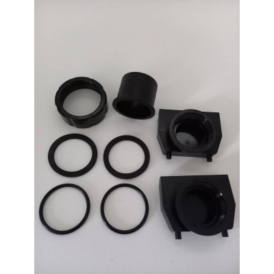 Sættet indeholder: Slangestuds gevind, slangestuds 2" med omløber til bundudløb, pakninger og spændebånd.