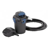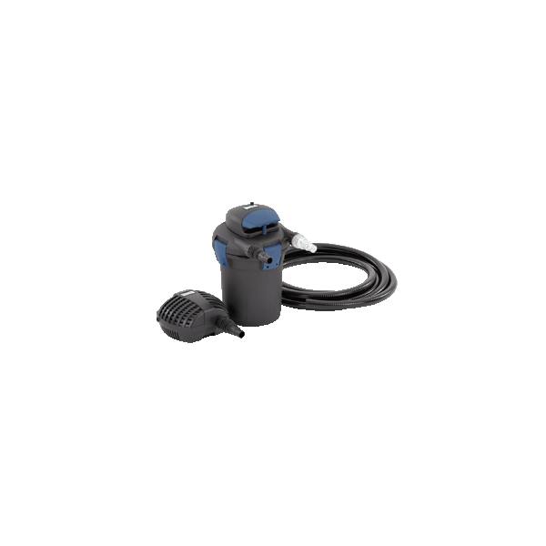 Oase BioPress 4000 havedamsfilter (trykfilter) sæt indeholder pumpe 1500 L/T, bassin filter med UVC 7W, 4,5m slange 3/4". - Bassin filteret kan nedgraves så kun toppen er over jorden, ved rensning af filteret byttes slangerne om så indgangen kommer over på udgangen og man hiver i håndtaget så svampene renses og det beskidte vand ledes væk fra bassinet.