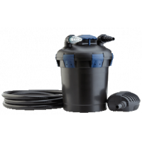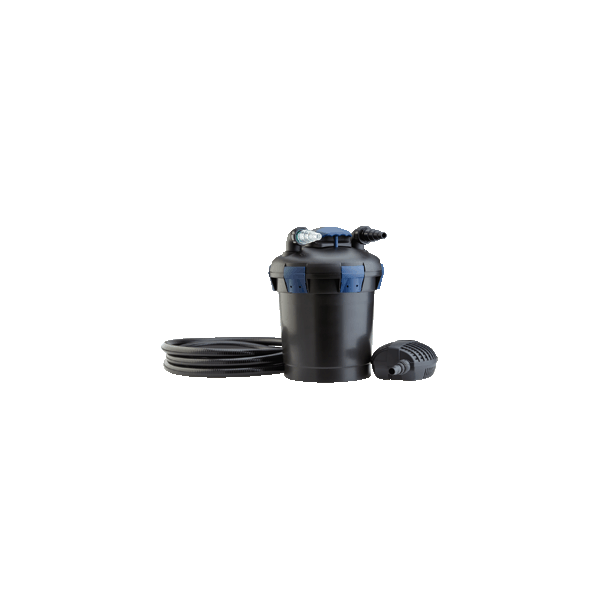 Oase BioPress 10000 havedamsfilter (trykfilter) sæt indeholder pumpe 3500 L/T, bassin filter med UVC 11W, 5 m slange 1". - bassin filteret kan nedgraves så kun toppen er over jorden, ved rensning af filteret byttes slangerne om så indgangen kommer over på udgangen og man hiver i håndtaget så svampene renses og det beskidte vand ledes væk fra bassinet.