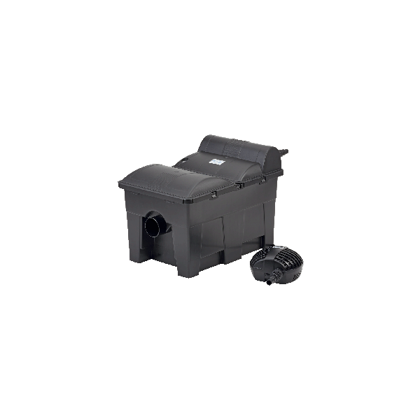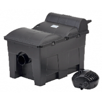 Oase Biosmart 14000 sæt bassinfilter, man rengøre svampene ved trække i håndtagene og derefter åbner man bundskruen på filteret så det beskidte vand kan komme væk, havedams filter kan også skilles af så man kan rengøre det helt, hvilket for det meste kun er nødvendigt at gøre når det pakkes sammen til vinter - bassinfilter sættet indeholder: