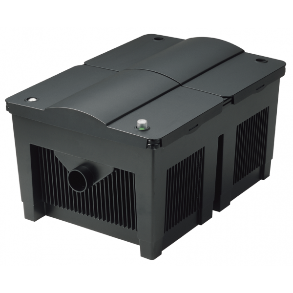 Oase Biosmart 36000 bassinfilter hvor man selv kan til købe UVC og pumpe, en god løsning hvis man har en pumpe og/eller UVC i forvejen - meget let at rengøre, man trækker i håndtagene på havedams filteret og derefter åbner man bundventilen på havedams filter så det beskidte vand kan komme ud.