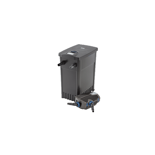 Oase FiltoMatic CWS 25000 bassin filter sæt er et anlæg som er billigt i strøm i kraft af at det er den nye Oase Aquamax Eco Premium havedams pumpe som medfølger - slanger til indgang og rør til afløb er ekstra tilbehør.