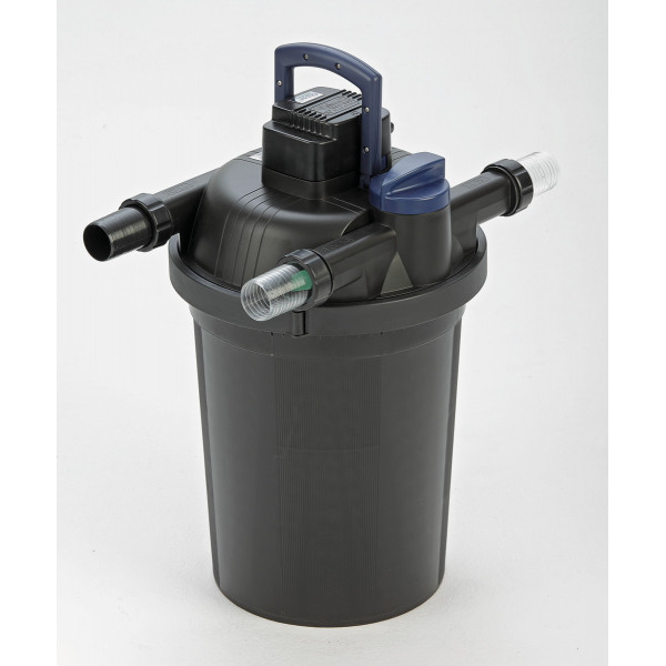Oase Filtoclear 16000 er et trykfilter til havebassiner, dette havedamsfilter kan graves ned, så kun lige toppen er over jorden, er meget let at rengører og det har indbygget UV på 24W - vi anbefaler ikke at man bruger trykfilter til damme med koikarper, men at man vælger et Oase Filtomatic eller Oase Biotec filter til disse - hvis man ønsker trykfilter til koidamme, da kontakt mig venligst først så man får den rigtige størrelse.
