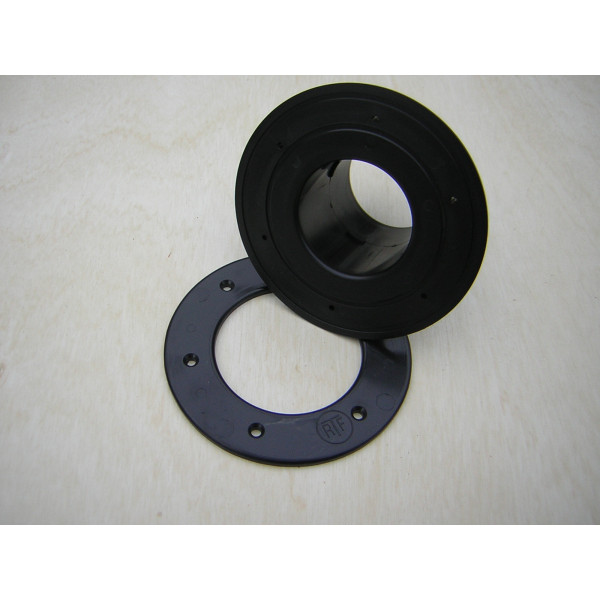 RTF gennemføring 50 mm til folie eller beholder er fremstillet i kraftigt matriale og der medfølger skruer - det anbefales at man giver det lim - lim findes over disse produkter.