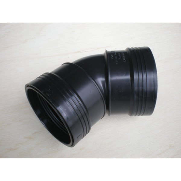 Afløbs Bøjning med dobb. muffe, 45g, Sort 75 mm.